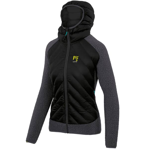 Die MARMAROLE TECH W von Karpos ist eine isolierende Damenjacke, die durch ihre Hybridkonstruktion auffällt und eine Vintage-Interpretation der historischen Marmarole-Jacke mit echten Entenfedern darstellt.