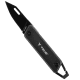 Das Messer istleicht und platzsparend und verfügt über einen Karabinerclip, mit dem es schnell und einfach an einem Schlüsselbund oder direkt am Hosenbund befestigt werden kann. Es hat einen Aluminiumgriff und eine Klinge aus rostfreiem Stahl mit schwarzer Oxidbeschichtung, die mit einem Schnellspannclip betätigt wird.